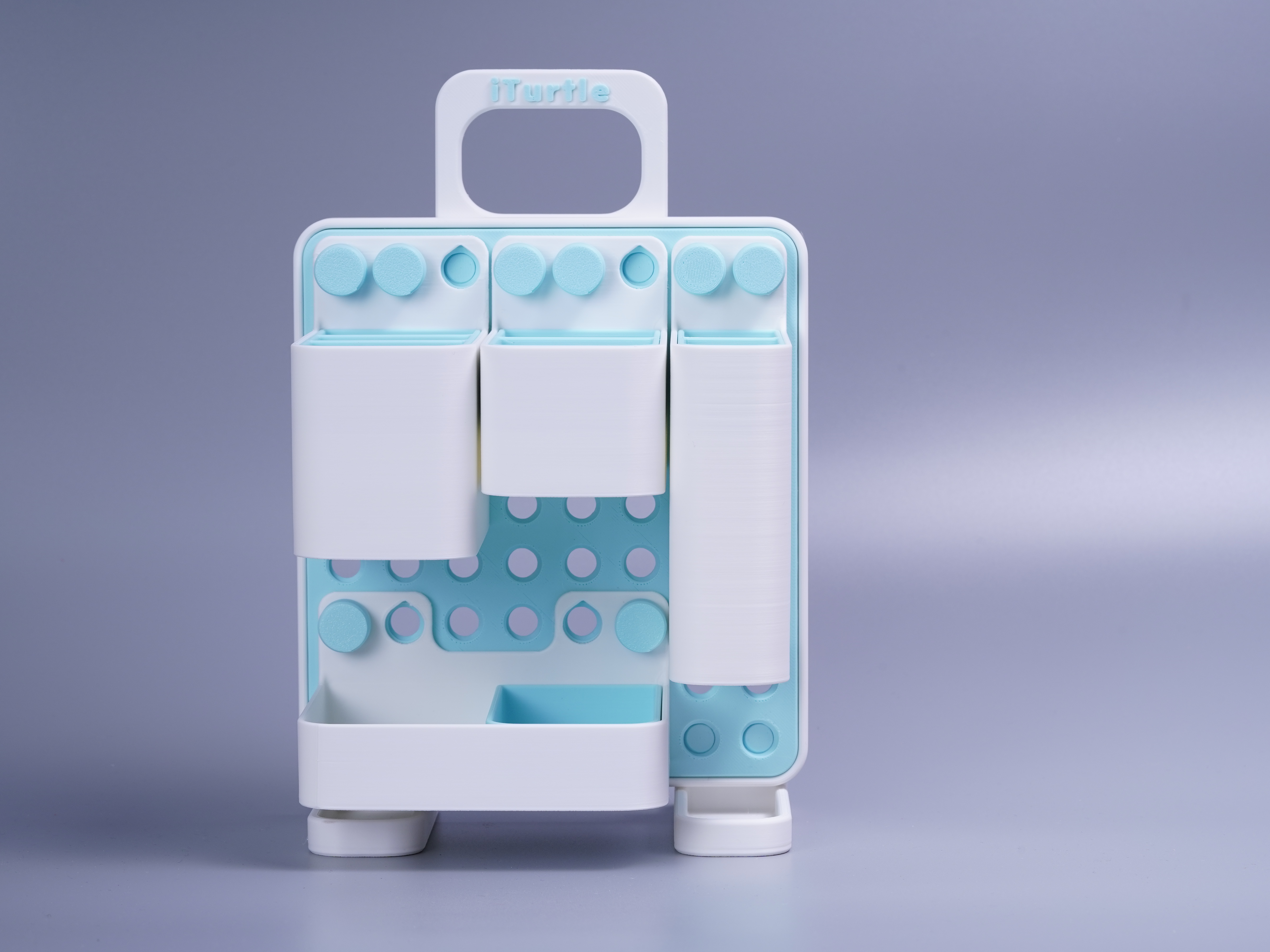 - 페그보드(Pegboard) 형태라서 다양한 컨테이너와 칸막이로 원하는 용도에 맞게 구성할 수 있습니다.