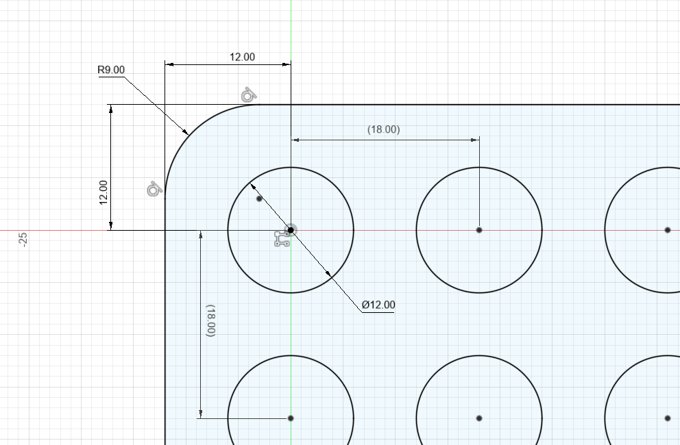 볼트를 위한 홀은 12mm 이고, 홀 사이에 6mm 간격을 두었습니다.
